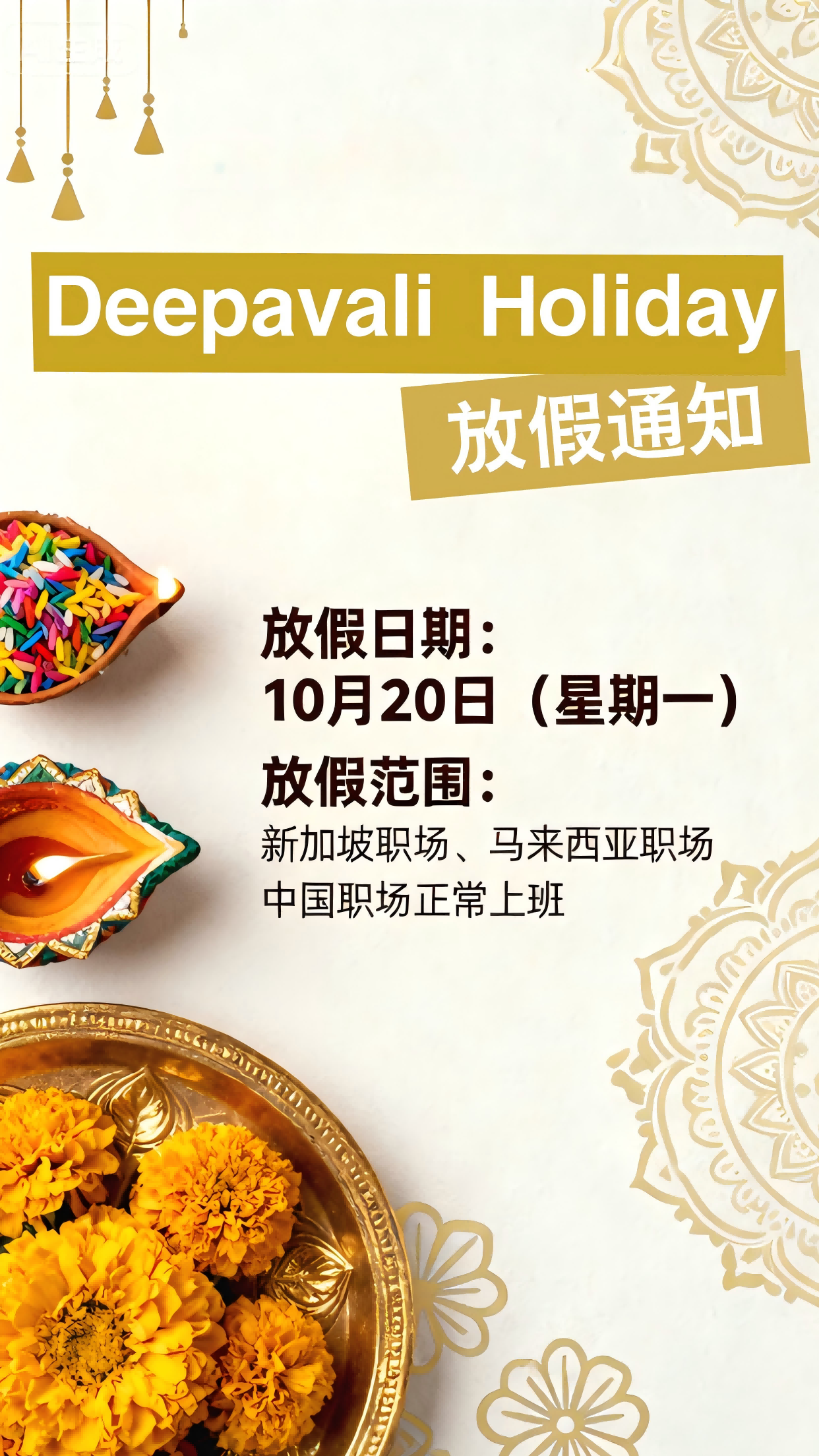 Deepavali Holiday放假通知